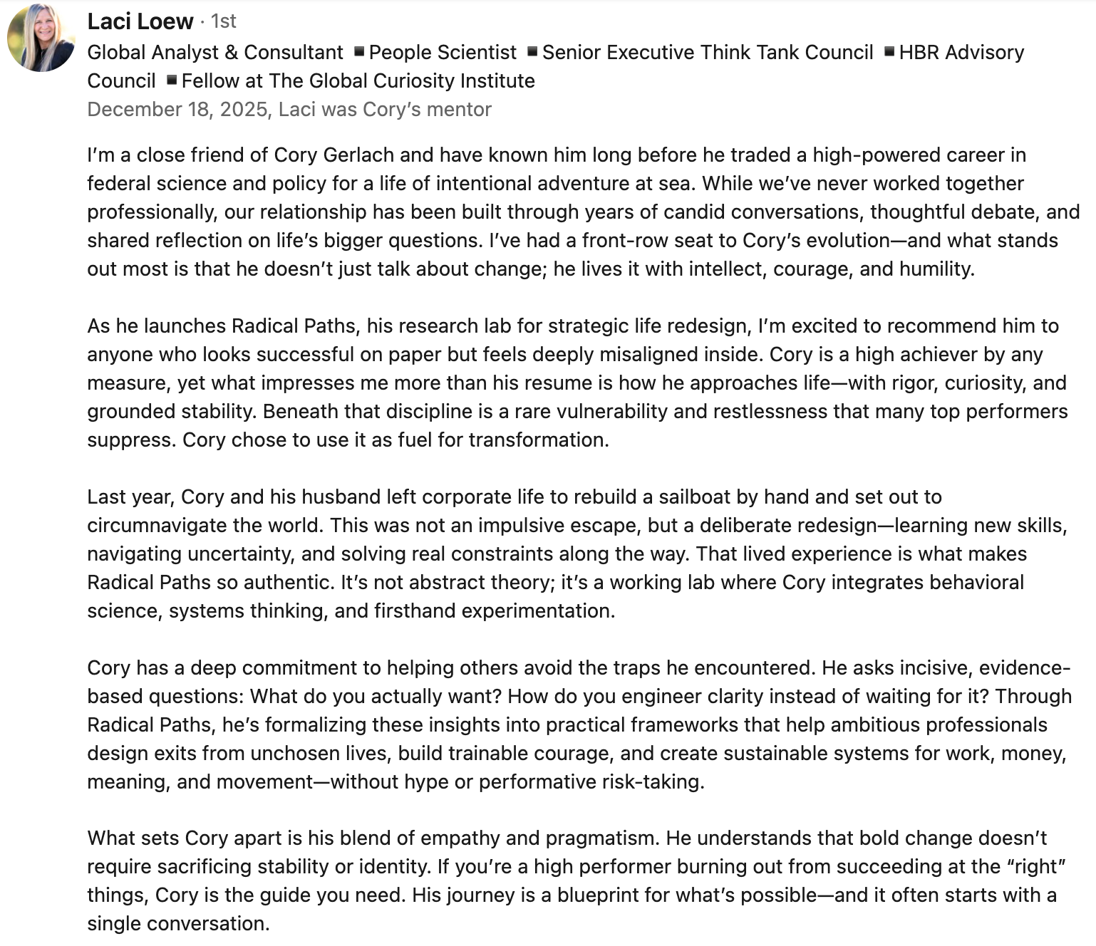 Current availability: next spot opens in April 2026 (to get on my waiting list, either message me on LinkedIn or email me at Coryvgerlach@gmail.com).